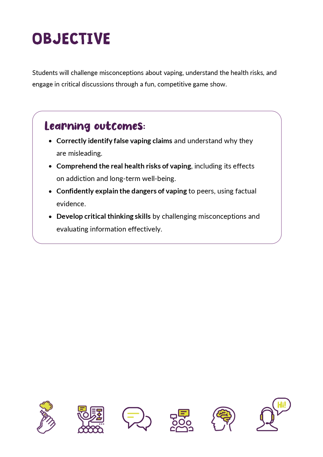 The Vaping Mythbusters Game Show is a fun and nteractive way to bust vaping myths in the classroom